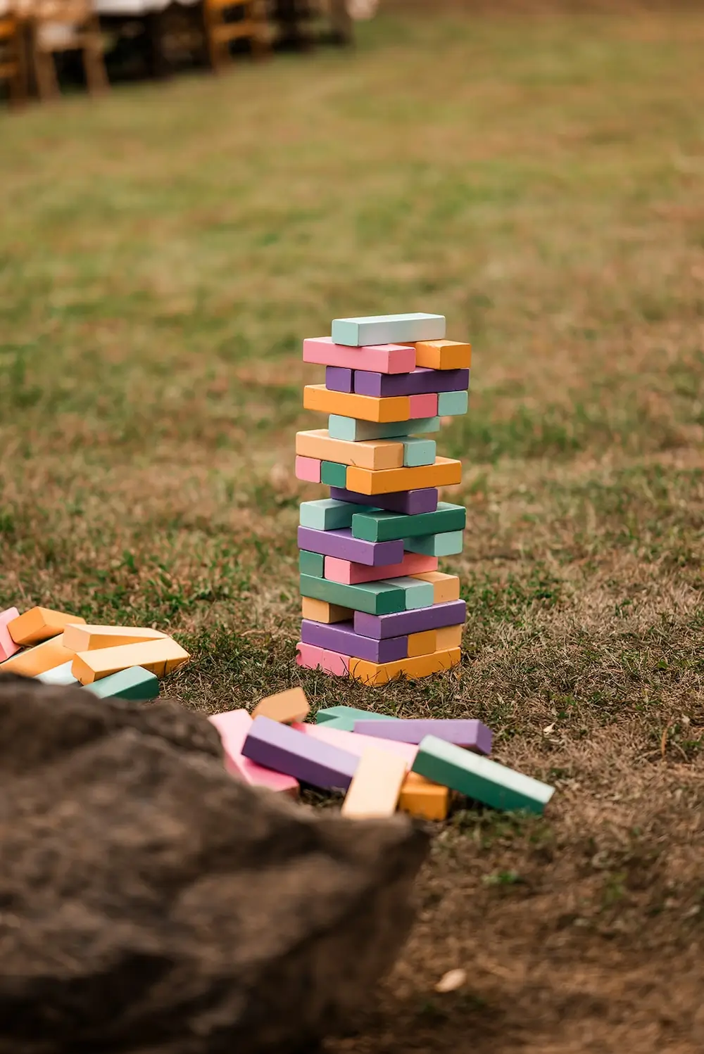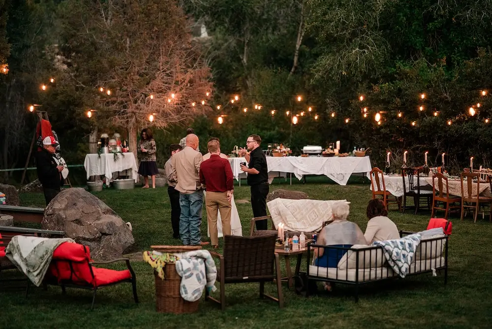 Guests spent the evening enjoying dinner, playing yard games, and settling into cozy furniture vignettes arranged for conversation and connection. Rather than a traditional dance floor, the celebration focused on time spent together—laughing, talking, and simply being present.