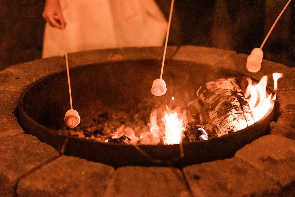 Instead of a traditional cake cutting, Cora and Joey reimagined the moment by sharing s’mores around the bonfire. As the evening grew cooler, guests gathered around the fire, roasting marshmallows and enjoying the warmth of the flames under the twinkle lights.